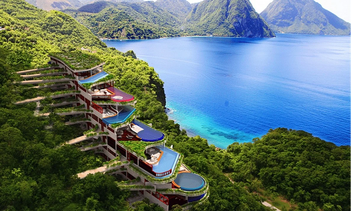Jade Mountain es, para muchos, el hotel más icónico y exclusivo de Saint Lucia. Diseñado como un santuario para parejas, sus famosas suites “Sanctuary” prescinden de la cuarta pared, permitiendo una vista completamente abierta a los Pitons y al mar Caribe. Cada suite cuenta con piscina infinita privada, arquitectura orgánica y total privacidad.El resort no está orientado a familias ni grupos, sino a una experiencia profundamente romántica y contemplativa. El servicio es altamente personalizado, con gastronomía de autor y acceso al exclusivo Anse Chastanet Beach.